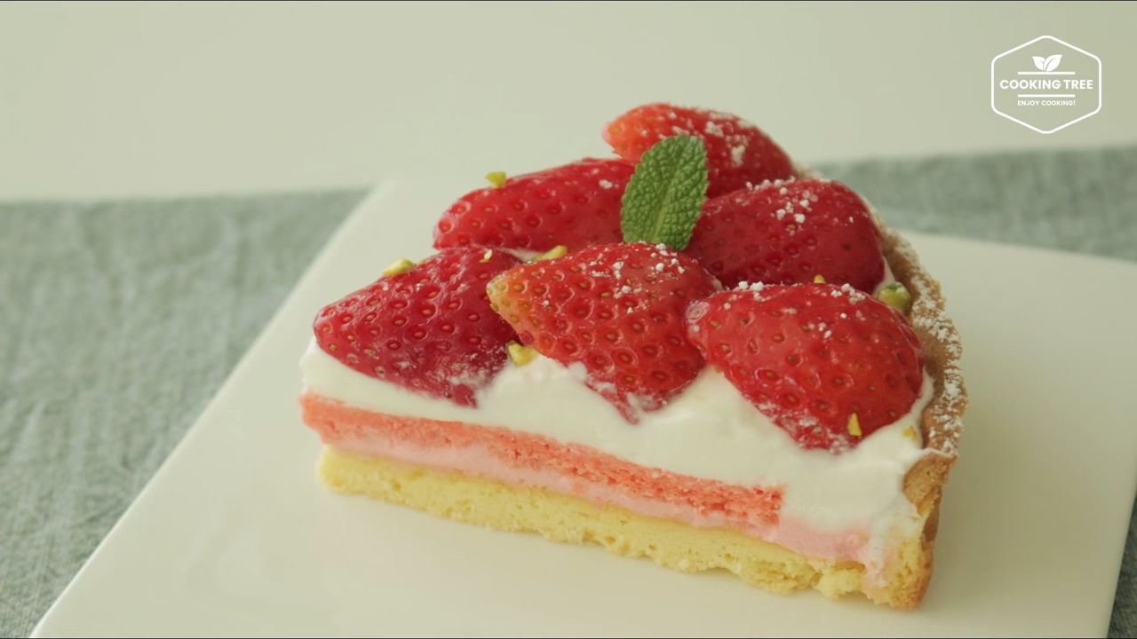 7. Disposer des fraises dessus et saupoudrer de sucre glace sur les bords.